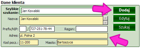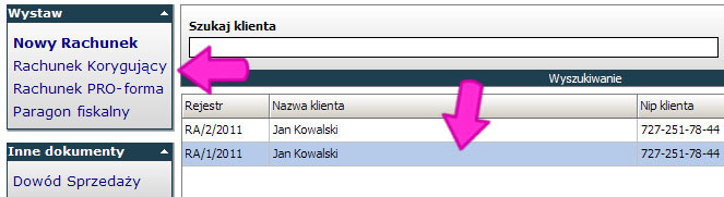 - za pomocą przycisku szukaj wybieramy klienta z kartoteki klientów